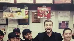 Justin Timberlake comemora vitórias no People's Choice Awards em lanchonete
